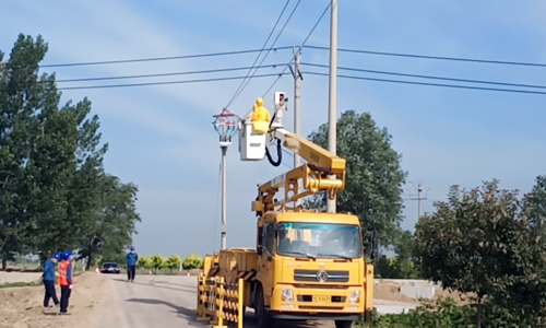 以下施工現(xiàn)場是,鐵路線油井支線1號桿和15號桿帶電加裝占位器,2號桿帶電加裝驗電環(huán),施工單位是東營華昌電力工程有限公司。
