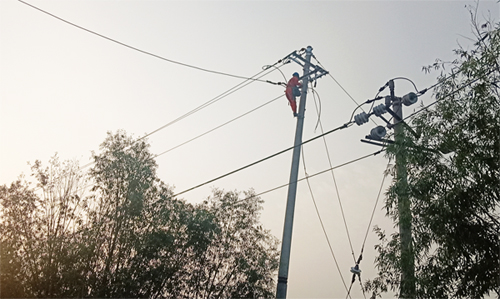 東營華昌電力工程有限公司進行10kV王崗線武王分支線絕緣化改造工程。下圖為現(xiàn)場施工圖: