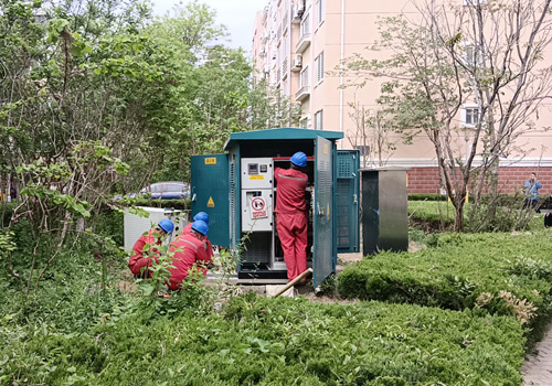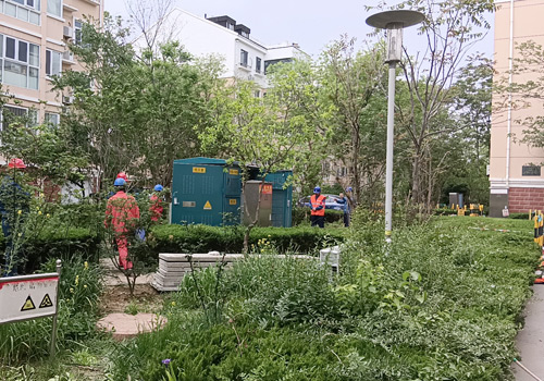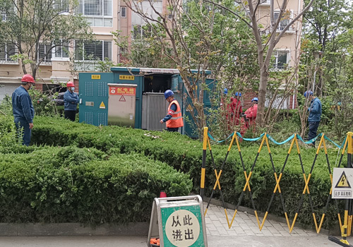 2023年4月24日,東營區(qū)菊香園小區(qū)箱式變電站更換現(xiàn)場